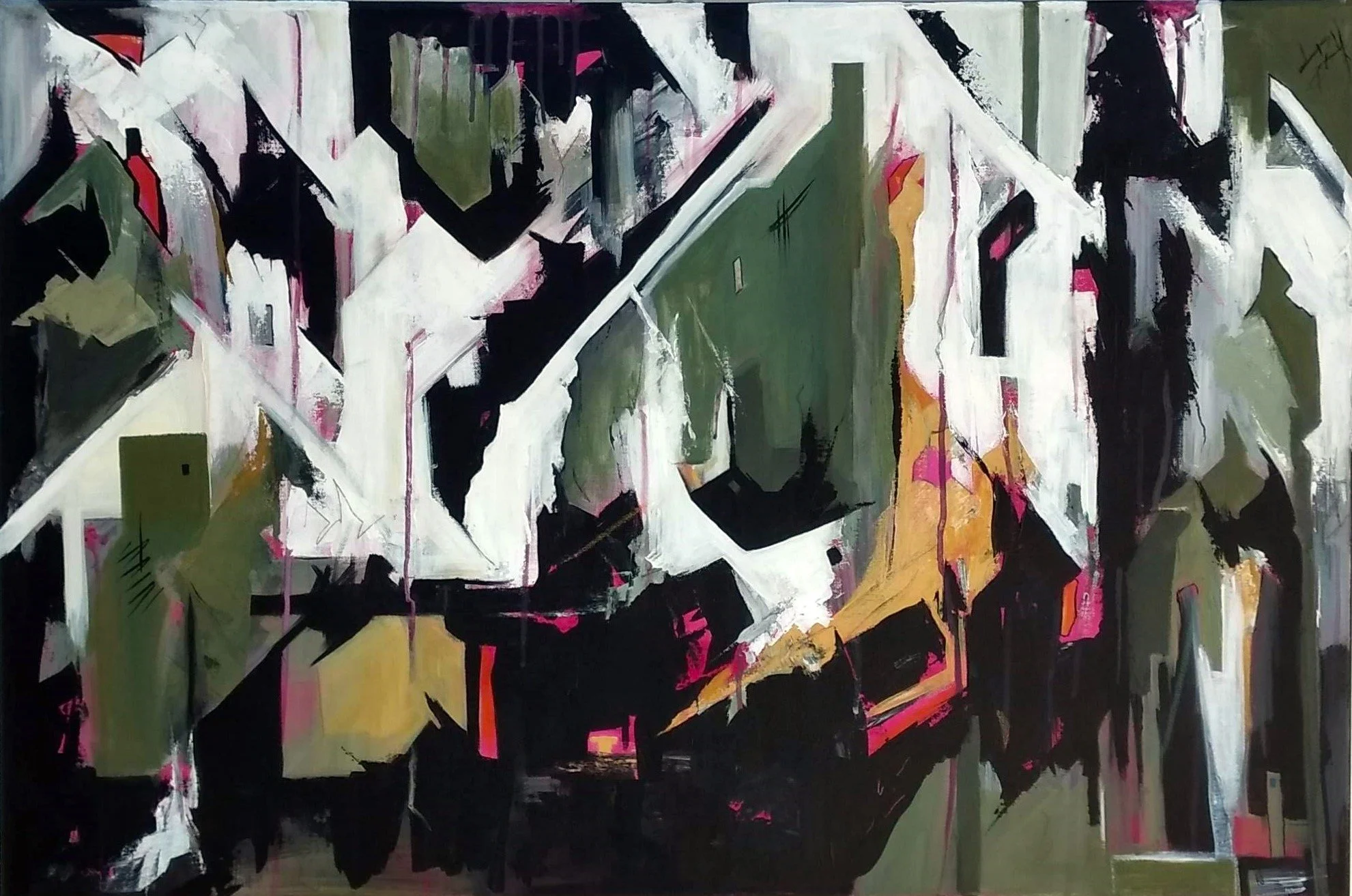 “The Noise of the Day”, Acrylic w/ Caran d’Ache, 48 x 36, $1100